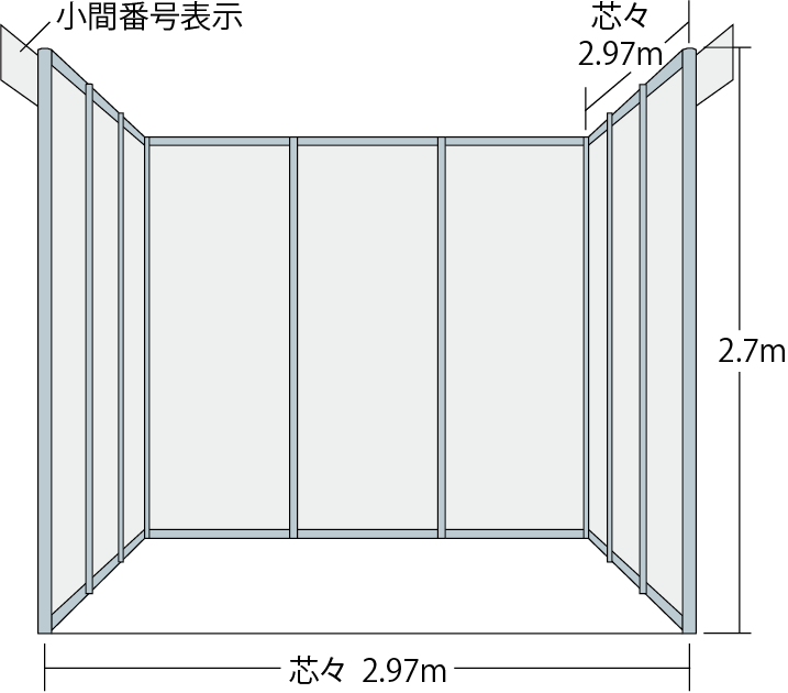 1小間:[間口2.97m×奥行2.97m×高さ2.7m]