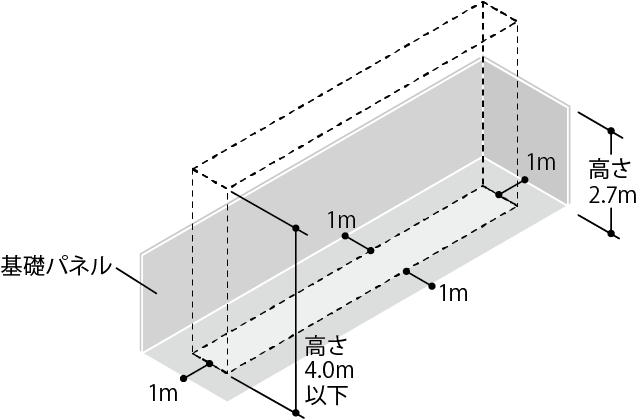隣接小間、後壁、通路から1m以内は高さ2.7mまで、それ以外は4.0mまで。