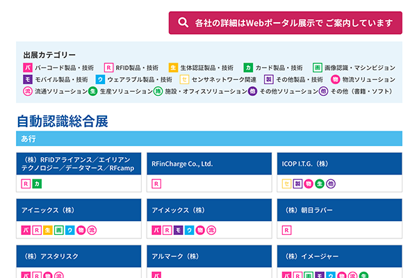 来場のご案内 来場のご案内 来場のご案内 来場のご案内 来場事前登録 出展社一覧 Webポータル展示 画像認識×AIゾーン 展示会場レイアウト 併催事業一覧 自動認識セミナー 合同 基調講演 出展社プレゼンテーション 自動認識システム大賞 表彰式&講演会 JAISAセッション 「事例でわかる自動認識」出展企業パネル展示 相互入場 来場のお問合せ 来場ご案内 出展社情報 出展社一覧 ゾーン展示 展示会場レイアウト 併催事業 併催事業一覧 自動認識セミナー 出展社プレゼンテーション 自動認識システム大賞 JAISAセッション 「事例でわかる自動認識」出展企業パネル展示 同時期開催展との相互入場 | 来場のお問合せ ご来場の皆様へ 来場事前登録入場無料(完全事前登録制) 来場者ログイン ご出展社様へ 出展社専用サイト 2025 EPC RFID FORUM × 自動認識総合展 同時開催展 同時期開催展 協賛